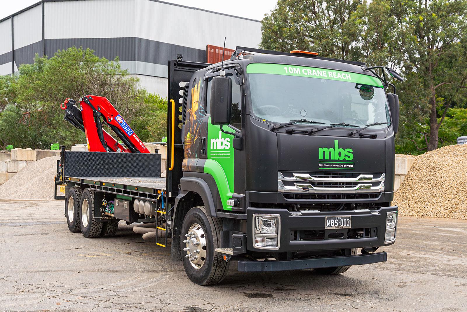 MBS crane hire offers the ability to reach 31 meters with the flexibility of a table top truck allowing for transportation of goods up to 6 meters in length. This crane truck is a modern Volvo European truck with a highly capable and technologically advanced rear mounted 31 meter reach Palfinger Crane. It’s a recipe for excellent onsite solutions and one that possess the ability to reach further onsite, winch, transport and ultimately offer unparalleled convenience.